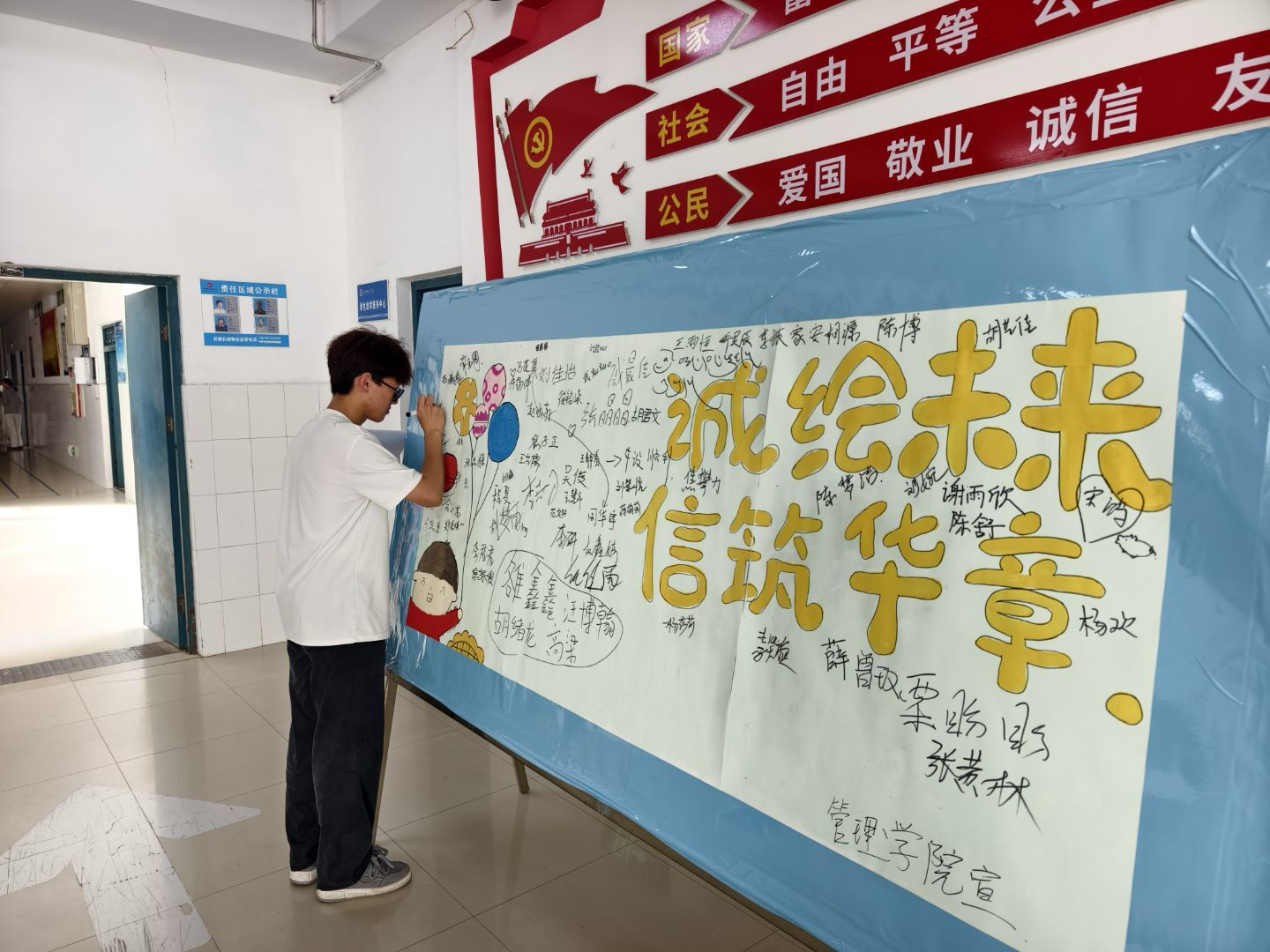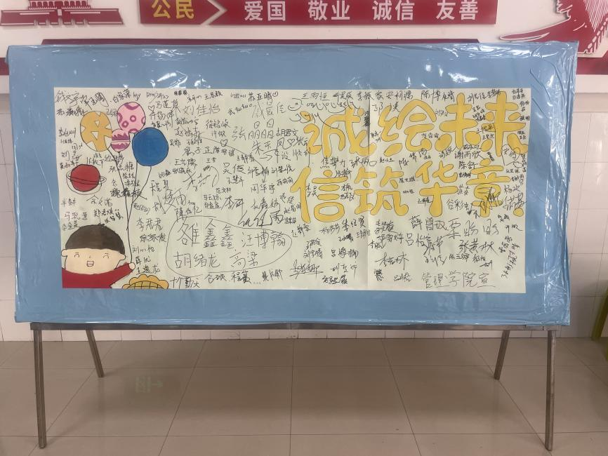 (通讯员 王倩倩)“诚者,物之终始,不诚无物。是故君子诚之为贵。”诚信,作为中华民族传承千年的精神瑰宝,是个人立身之本、社会运行之基、国家发展之要。为弘扬诚信文化,营造诚实守信的校园氛围,推动员工资助工作健康发展,太阳成tyc7111cc官网于5月16日下午3点在八号楼一楼大厅举办了“诚绘未来,信筑华章”诚信签字活动。