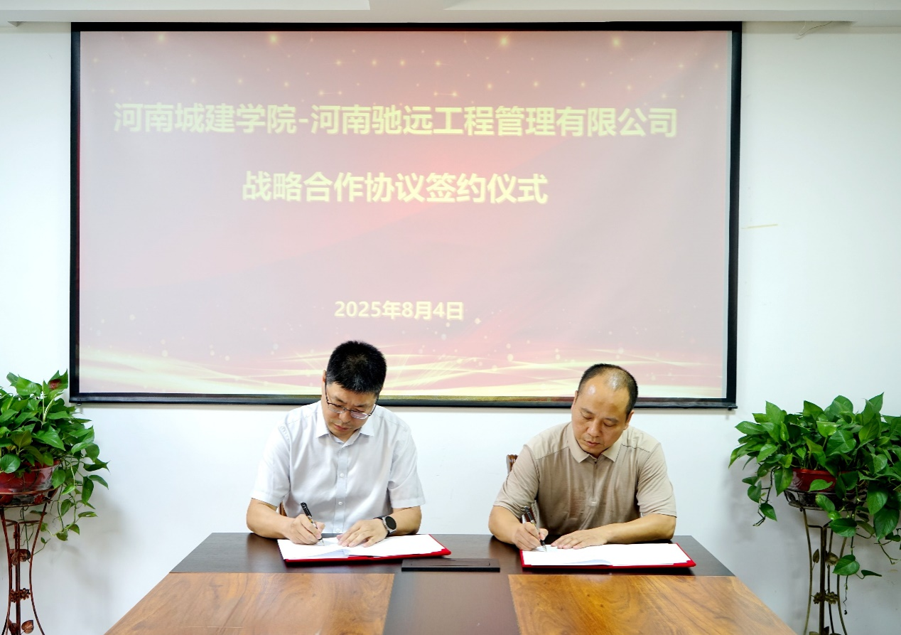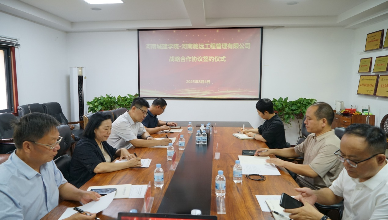 (通讯员 朱渴望)8月4日下午,公司与河南驰远工程管理有限公司校企合作签约暨授牌仪式在河南驰远工程管理有限公司二楼会议室举行。公司副董事长毛艳丽,河南驰远工程管理有限公司董事长张军出席签约仪式。国有资产管理处处长闫瑾、太阳成tyc7111cc官网经理霍松涛、河南省数字建造工程技术研究中心主任殷许鹏,河南驰远工程管理有限公司总经理贾朝伟、造价部经理侯国立、造价部副经理孙红亚参加签约仪式。