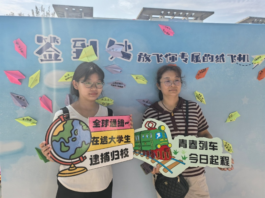 除了高效有序的报到流程,现场还设置了多个趣味互动区域,吸引了众多新生踊跃参与。“套圈赢奖品”气氛热烈,新生们在轻松互动中收获奖品、结识伙伴;“纸飞机寄语”则成为情感表达的窗口,同学们将大学心愿写于彩纸,放飞梦想、汇聚祝福,形成一道承载希望的青春风景。这些活动不仅增添了迎新的趣味性,同时也成为了新生快速破冰、融入集体的催化剂。