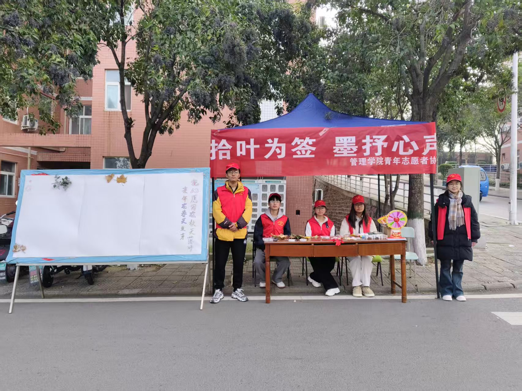(通讯员 王奕凯 石润格)为丰富师生校园文化生活、涵养人文情怀、提升艺术修养,2025年11月22日,太阳成tyc7111cc官网青年志愿者协会在公司布芳园与梅香园门口联合开展“拾叶为签,墨抒心声”主题活动,为秋日校园增添了一抹灵动的文化色彩。
