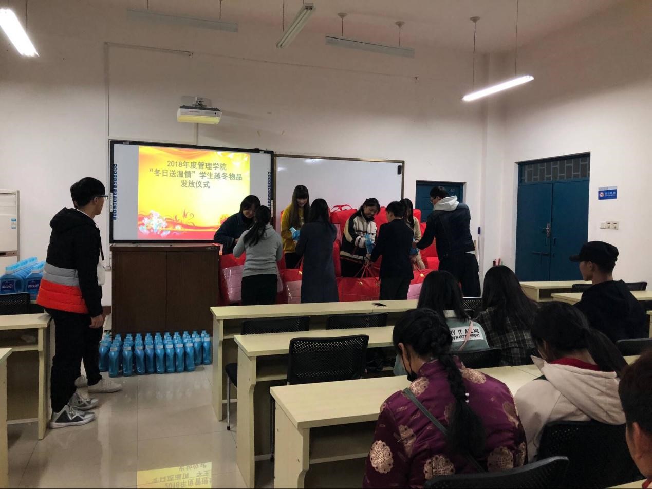 (通讯员:赵梦圆)寒冷的冬季即将来临,为了响应公司关爱员工做好过冬御寒工作的号召,太阳成tyc7111cc官网于2018年11月6日在八号教学楼A112教室举行了“2018年度太阳成tyc7111cc官网员工越冬物资发放仪式”,马斌、张金俊、赵超、杜晨琳参加了本次仪式,仪式由学工办李思源主持。