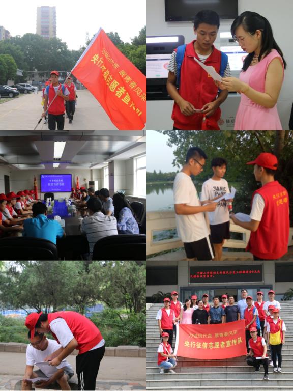 “诚信鹰城,文明青春”团队在中国人民银行平顶山市中心支行的实践中,对于征信的相关知识进行了系统的学习。随后,志愿者们来到河滨公园,白龟湖公园等人员聚集场所对征信知识进行宣传调研,在活动期间,志愿者们虚心学习,干劲十足,得到了居民们的热情参与以及人行工作人员大力支持,使得整个活动顺利开展,并圆满结束。
