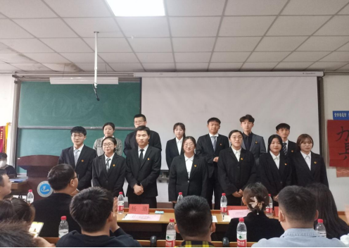 辅导员老师郑巍、李文雅、石一涵为各部门部长颁发聘书