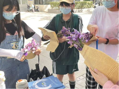 本次活动为同学们提供了一个类似“树洞”的展板,同学们在便利贴上写下自己想说的话,将自己的便利贴贴在展板上后即可领取一簇花束。本次活动旨在通过一张小小的便利贴,表达大家的所思所感,如对疫情过后的期待,对梦想的追逐,鼓励自己勇敢去做想做的事情;用一张写满温暖话语的明信片,缓解学习压力和焦躁情绪,珍惜美好时光。让同学们在心理健康周期间将温暖和爱传递下去。