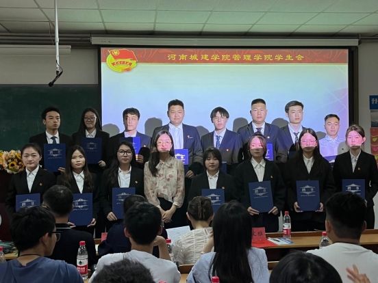 辅导员李文雅为往届员工会成员颁发聘书