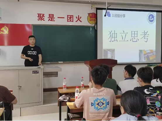 会上,榜样团的成员首先做个人经验展示分享,讲述了自己学习、工作、考研等方面的经验,建议同学们不论是在学习上还是生活上,都要找准目标做好自己,调整好自己的情绪及心态,并且鼓励同学们积极参加各类实践活动。分享结束后,成员们耐心细致地回答了同学在日常学习、实践实习、职业规划等方面的疑问。最后,邢瑞杰做总结发言,她鼓励同学们争做有理想、敢担当、能吃苦、肯奋斗的新时代好青年。