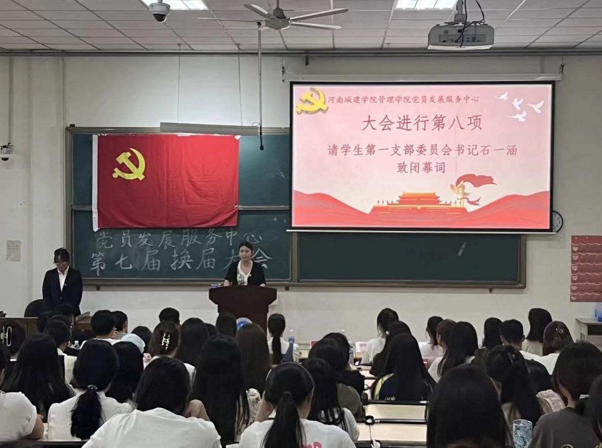 接着,由公司党员发展服务中心单群鹏代表第六届主任团作工作汇报,对上一阶段的党员发展服务中心工作做出总结。然后由王倩倩宣读第六届优秀主任名单并颁发证书;王奕凯为第六届优秀部长颁发证书;李文雅宣布第七届主任团名单并颁发聘书;公司党员发展服务中心第七届主任团辛佳亮代表作就职报告。最后,石一涵老师致闭幕词,不仅肯定了第六届主席团成员对于工作的细致程度,还表达出对新任主任团成员的希冀,期待在新一届主任团的带领下,党员发展服务中心的工作能够再创佳绩,为同学们提供更加全面的服务。