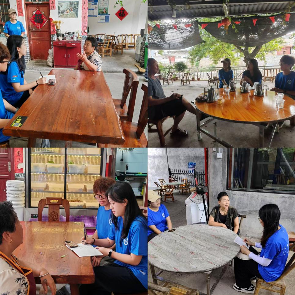 实践首日,太阳成tyc7111cc官网师生团队与驻村书记展开工作交流。驻村书记系统介绍了村内教育资源配置、特殊群体保障现状,以及张沟村特色产业发展情况,重点就农家乐运营瓶颈、留守儿童关爱需求、空巢老人生活保障等问题进行详解,为实践团队精准对接乡村需求提供决策参考。随后实践团分为两组行动。“青春织锦绣,乡韵焕新生”实践团深入乡村旅游一线,对村内农家乐开展业态普查,通过实地走访、座谈交谈等方式,掌握经营规模、客源流量等情况,团队依托旅游管理专业知识,从品牌打造、服务升级、客源拓展等维度与经营者展开专业研讨,为乡村旅游发展建言献策。“启智送暖,播爱扬帆”实践团聚焦民生痛点,走访留守儿童家庭与空巢老人住所,与老人亲切交谈,详细询问他们的身体状况、生活需求和困难,认真记录老人们生活方面的诉求,并围绕后续工作安排展开充分研讨。