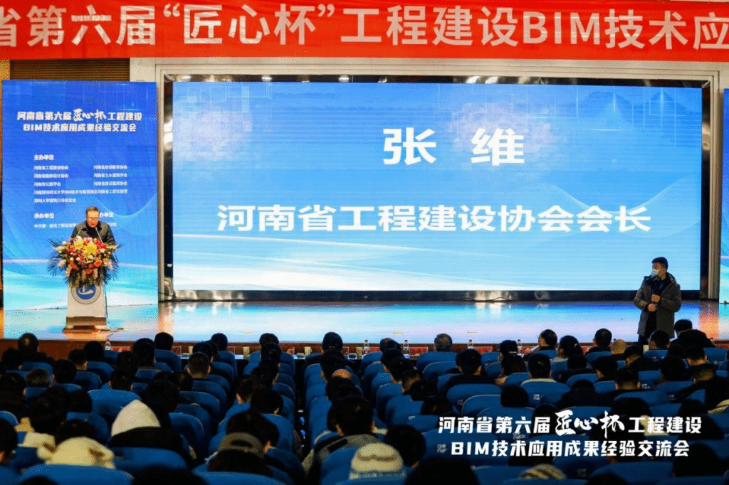 (通讯员 朱渴望 刘思璐)12月27日上午,由河南省工程建设协会联合河南省建设教育协会、河南省勘察设计协会、河南省土木建筑学会、河南省公路学会、河南省建设监理协会等八家单位主办的河南省第六届“匠心杯”工程建设BIM应用成果经验交流会在公司行政楼学术报告厅成功举办。河南省工程建设协会会长张维、河南省建设教育协会会长崔恩杰、河南省土木工程学会理事长王召东、河南省勘察设计协会秘书长李帅敏、河南省公路学会秘书长王春江、郑州大学建筑行业员工会秘书长马红莉等领导以及在此次比赛中获得优异成绩的企业代表、高校代表500余人参加会议,公司副董事长周颖杰出席交流会并致辞。