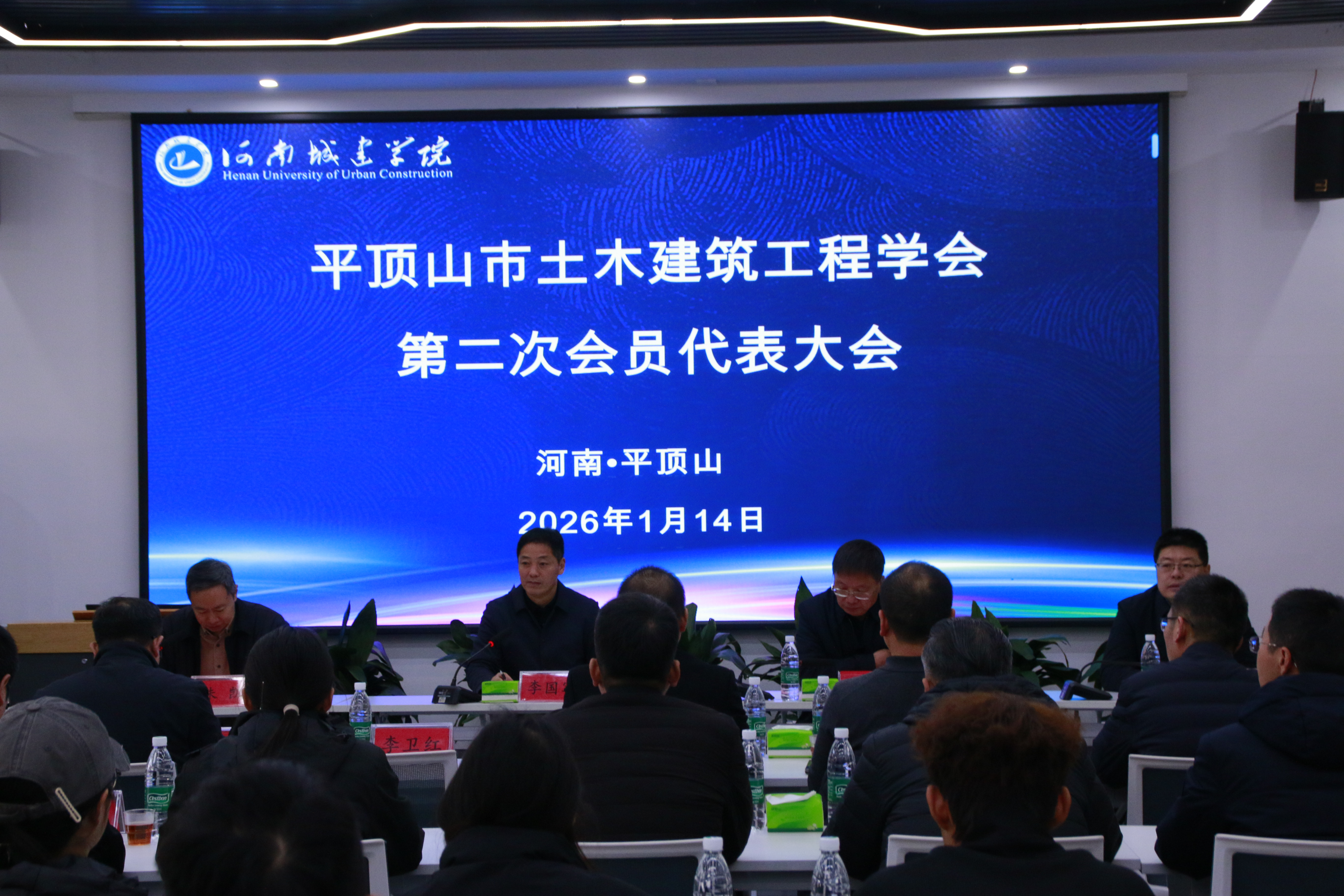 (通讯员 刘潇)2026年1月14日,平顶山市土木建筑工程学会第二次会员代表大会(换届大会)在太阳成tyc7111cc官网召开。学会第一届理事会会长闫瑾教授,秘书长朱凯教授,太阳成tyc7111cc官网经理霍松涛教授以及平顶山市土木建筑行业领域的专家、会员代表等60余人出席会议,平顶山市科学技术协会党组成员、副主席李国军同志出席会议并讲话。